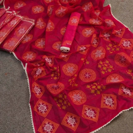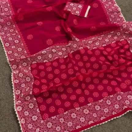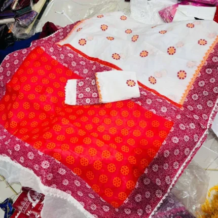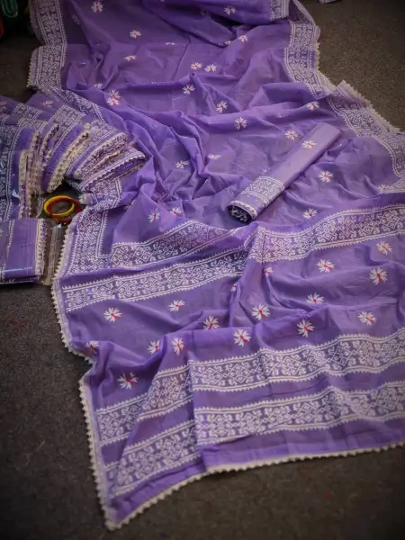 • ব্লাউজ পিস: সাথে পাচ্ছেন ১ গজ লম্বা ও ২ হাত বহরের ম্যাচিং সুতি ব্লাউজ পিস।