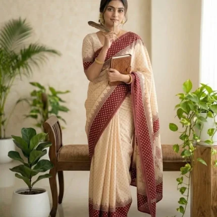 • শাড়ির ধরণ: প্রিমিয়াম হাফ-সিল্ক (আফসান প্রিন্ট)।