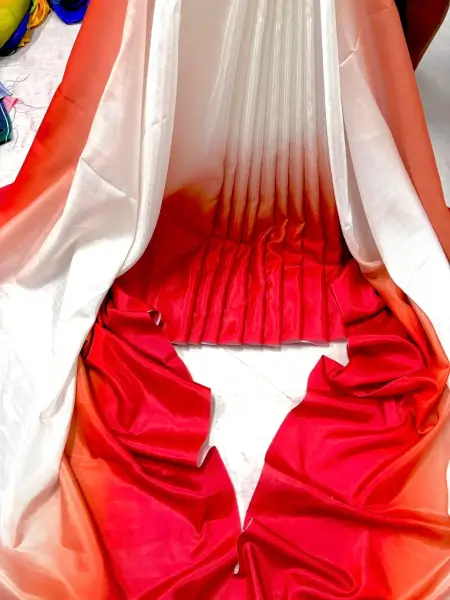 Crafted from high-quality Chanderi Silk Saree, this saree offers a sheer, breathable feel that drapes beautifully. The fabric’s natural luster makes it ideal for long hours of wear, providing comfort without compromising on a royal look.