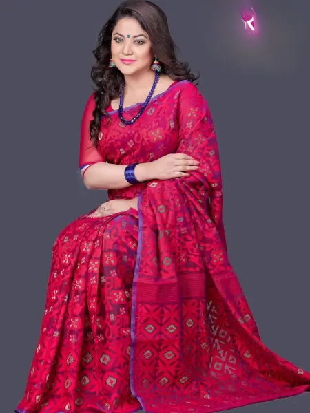 বর্তমানে অনেকেই একটু গ্লসি বা চকচকে লুক পছন্দ করেন। তাদের জন্য সুতির সাথে সামান্য সিল্ক মিশ্রিত করে তৈরি করা হয় এই বিশেষ Tangail cotton saree