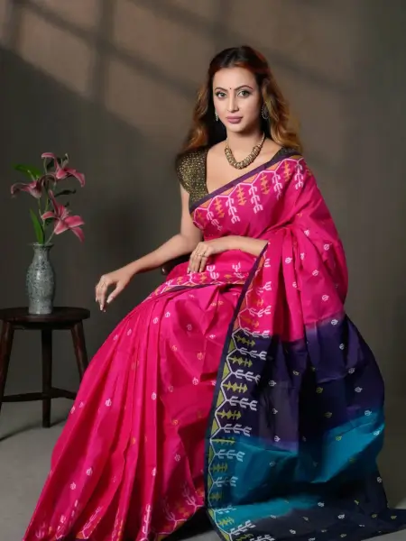 সম্পূর্ণ হাতে তৈরি এই শাড়িগুলোতে তাঁতিদের নিপুণ শ্রম মিশে থাকে। এর আঁচলে করা জ্যামিতিক নকশা বা ফুলের কাজ নজরকাড়া।
